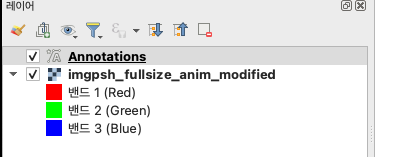 qgis에서 annotation layer가 포함된 qgs를 열면 다음과 같이 보인다. raster와 qgs가 한 쌍으로 움직인다.