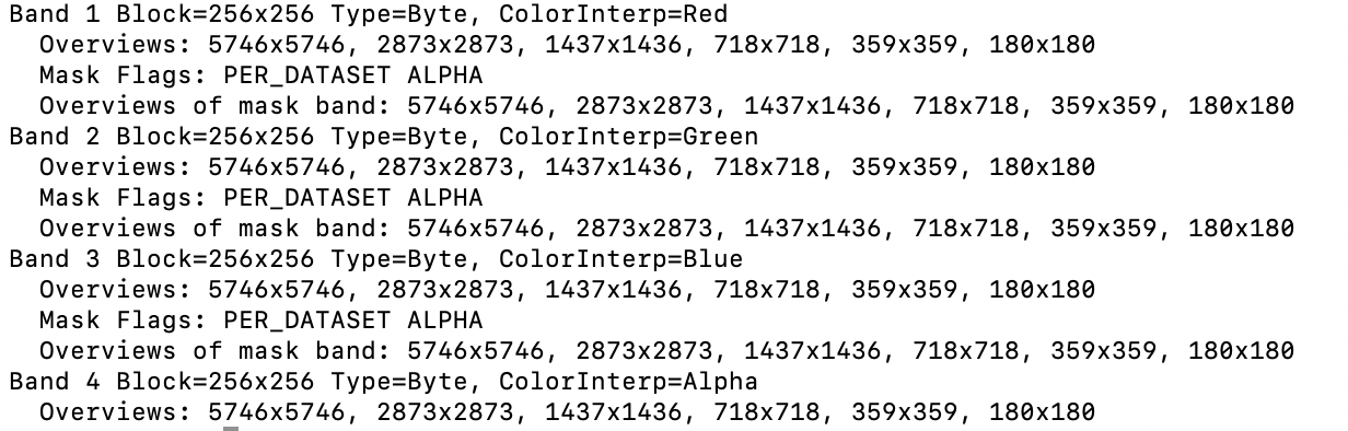 gdalinfo로 생성된 타일의 크기를 보면 좀 더 쉽게 이해할 수 있다.